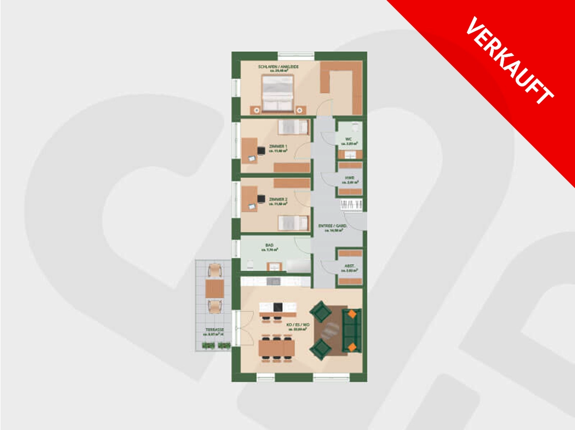 Die energieeffiziente Bauweise nach KfW Effizienzhaus 55 Standard und ein durchdachtes Außenanlagenkonzept sorgen für Nachhaltigkeit und ein angenehmes Wohnklima.